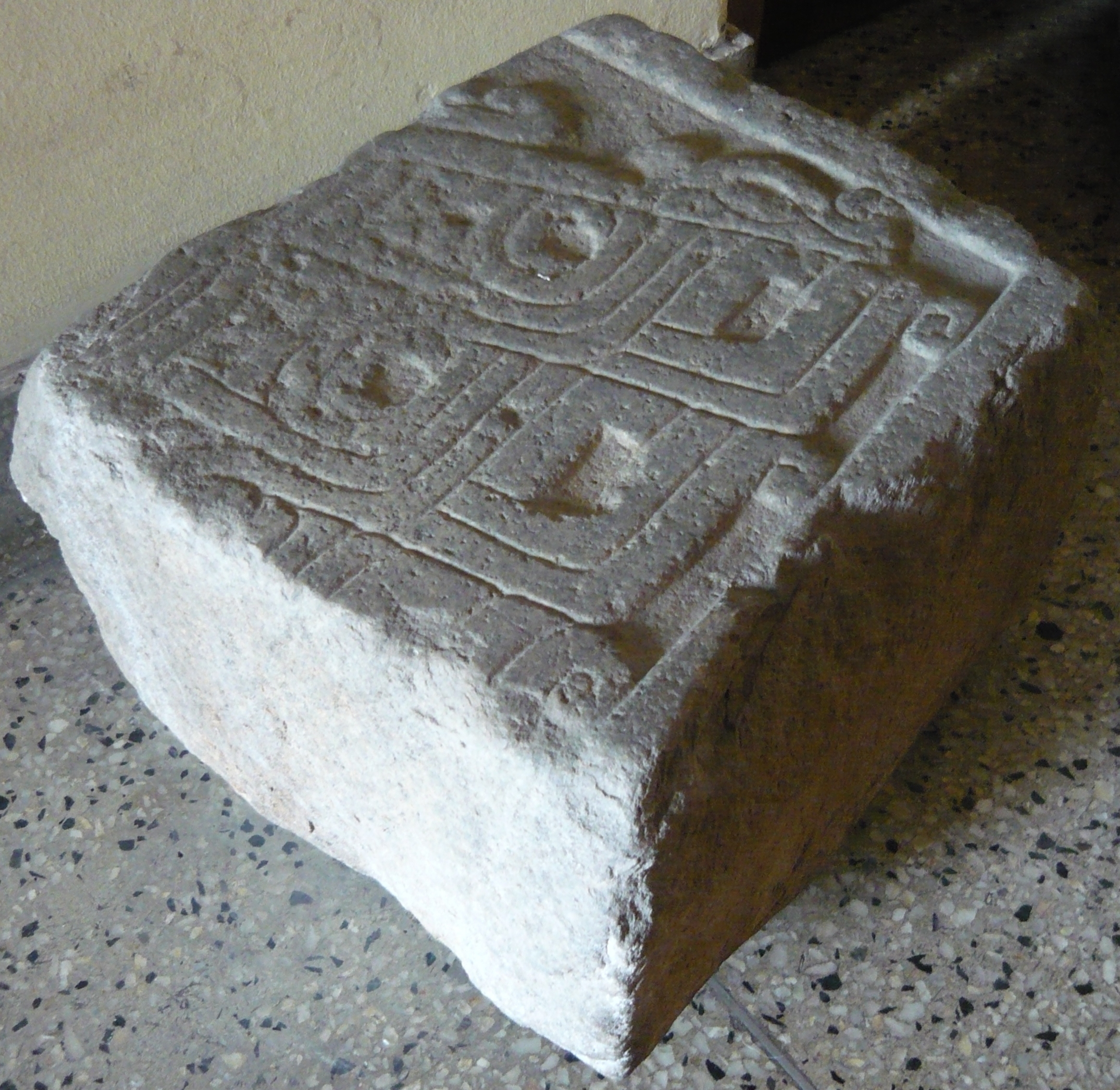 Al parecer se trata de la esquina superior izquierda de una estela. Se conserva el marco. La iconografía muestra parte de un ala, con grandes plumas y pequeñas volutas. También hay una figura serpentiforme; Tello la describió como una pluma rémige (remera) transformada en ofidio. Fue hallada en el sitio de Gotush en 1941. Las medidas son: largo 28 cm, ancho 31 cm y espesor 20,8 cm.