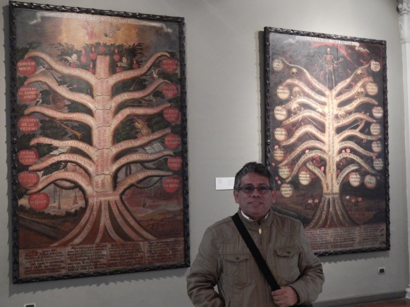 La investigación con la que obtuvimos el grado de magíster en Arte Peruano y Latinoamericano versa sobre un tema específico del arte virreinal: tres cuadros de la Compañía de Jesús, obras de gran complejidad formal e iconográfica, cuyo contenido es de vital importancia para entender varios aspectos de la vida espiritual de los jesuitas de la Lima colonial. Dos de las pinturas conforman un programa y se encuentran en la antesacristía de la iglesia de San Pedro de Lima. Se titulan Árbol de la vida y sus frutos y Árbol de la muerte y sus frutos.